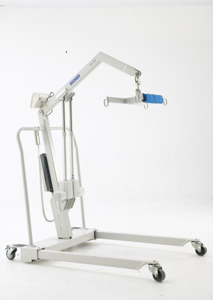 The Boomer features a standard 4 point hanger attachment which is designed for use with the Boomer bariatric sling. The extra wide base provides stability and wide handles to accommodate 2 operators. The Haycomp Boomer slings are available in M or L size.